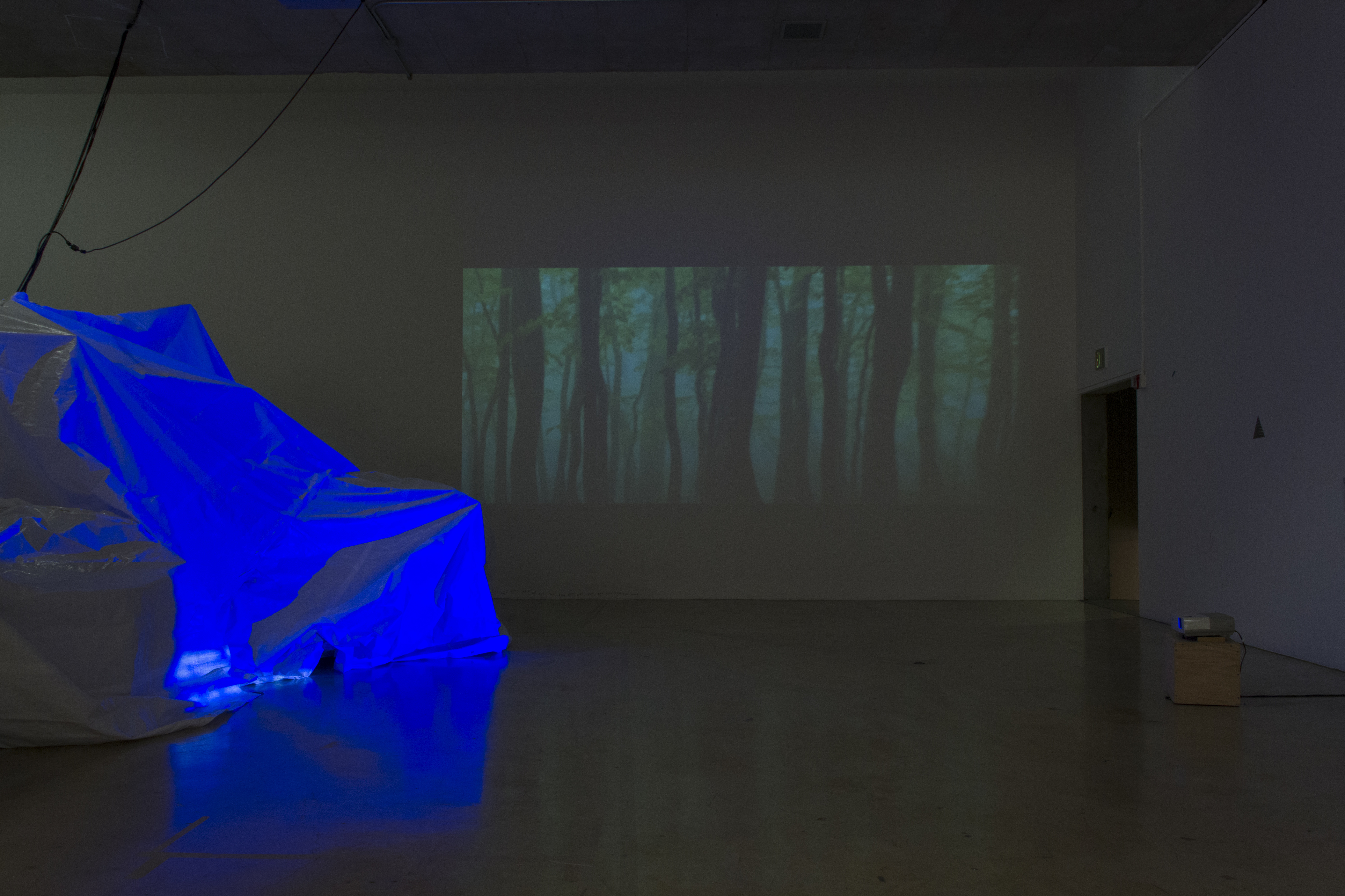 , The Mound, projector without source, single channel video of Apple “Forests” screensaver, Berkeley Art Museum, 2014